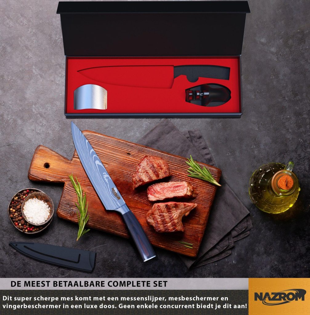 Een goed koksmes, bijvoorbeeld van NAZROM, blijft langer mooi als je het juist onderhoudt. Was het mes daarom met de hand en droog het direct om roestvlekken te voorkomen. Slijp het daarnaast regelmatig met een aanzetstaal of wetsteen om de scherpte te behouden. Om beschadigingen te voorkomen en de levensduur van je mes te verlengen, berg je het op in een messenblok of een magneetstrip.